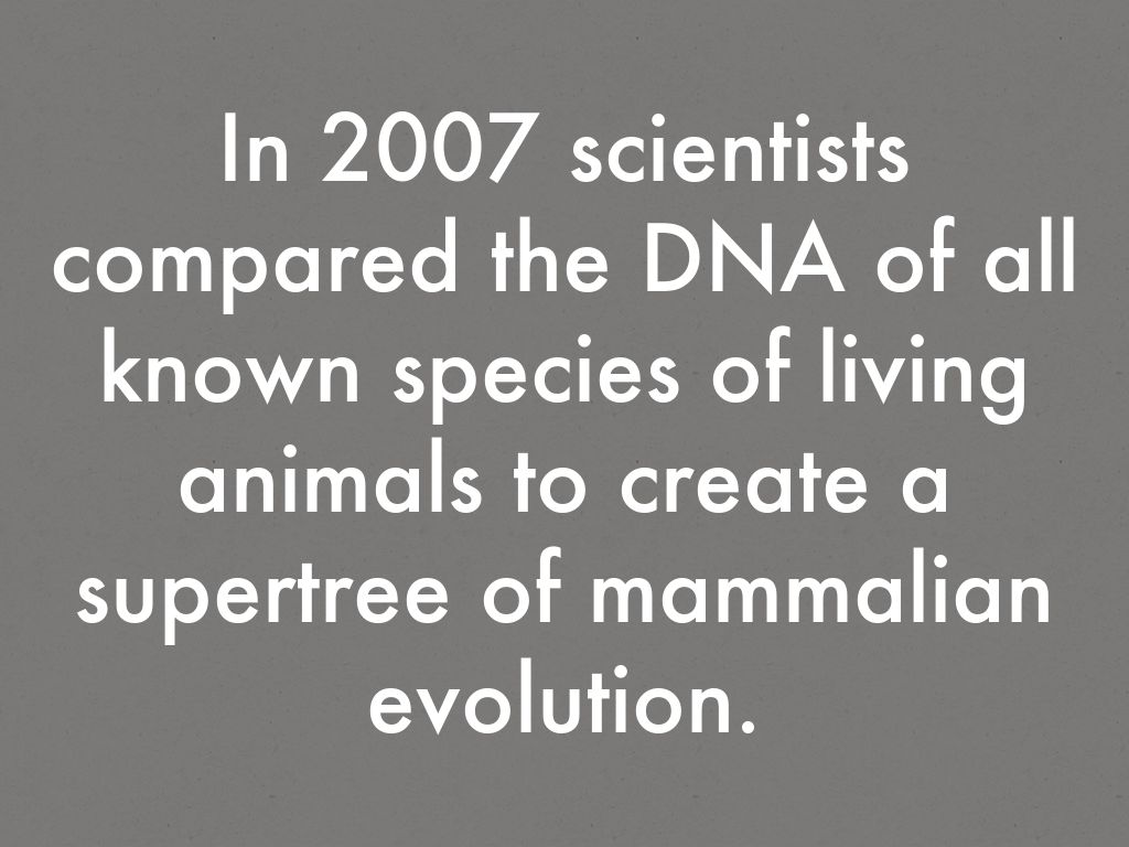 In 2007 scientists compared the DNA of all known species of living animals to create a supertree of mammalian evolution.