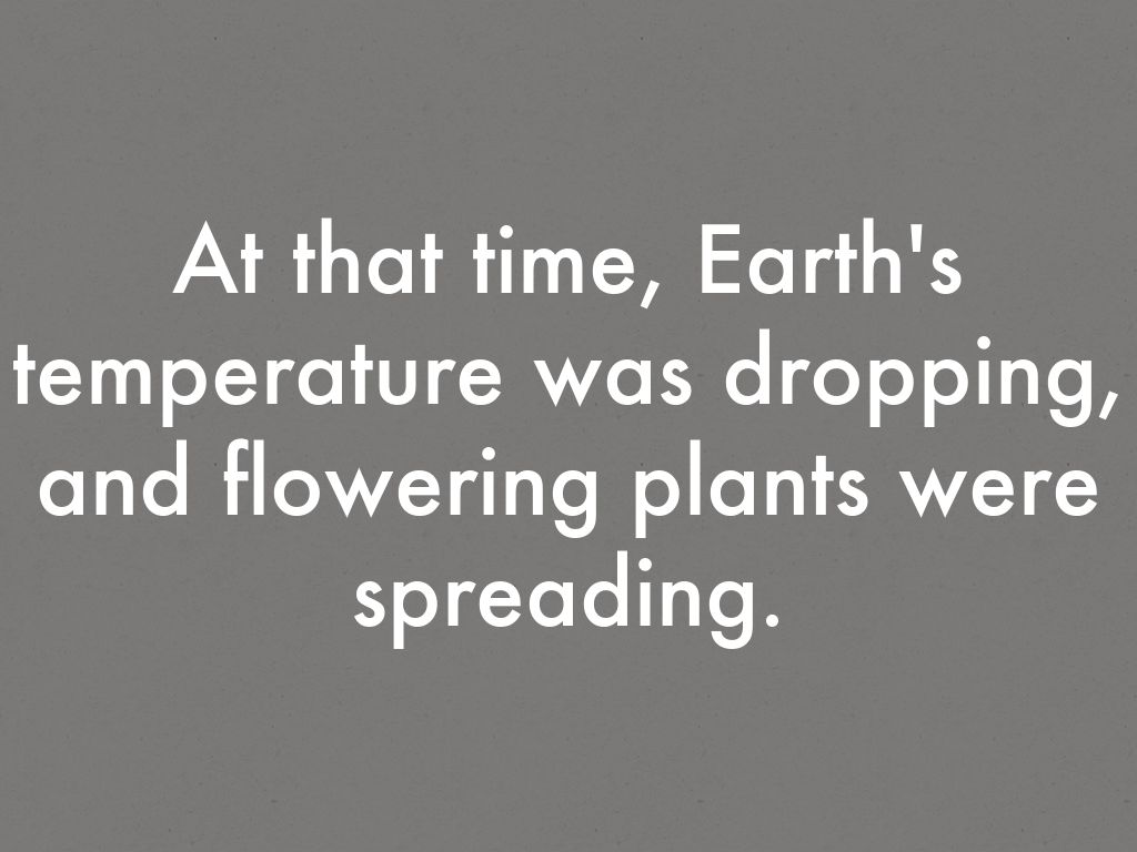 At that time, Earth's temperature was dropping, and flowering plants were spreading.