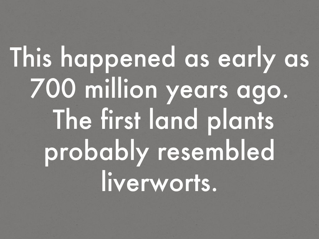 This happened as early as 700 million years ago. The first land plants probably resembled liverworts.