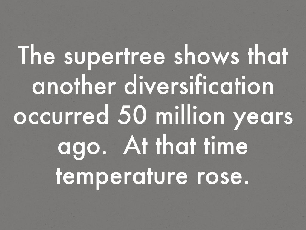 The supertree shows that another diversification occurred 50 million years ago. At that time temperature rose.