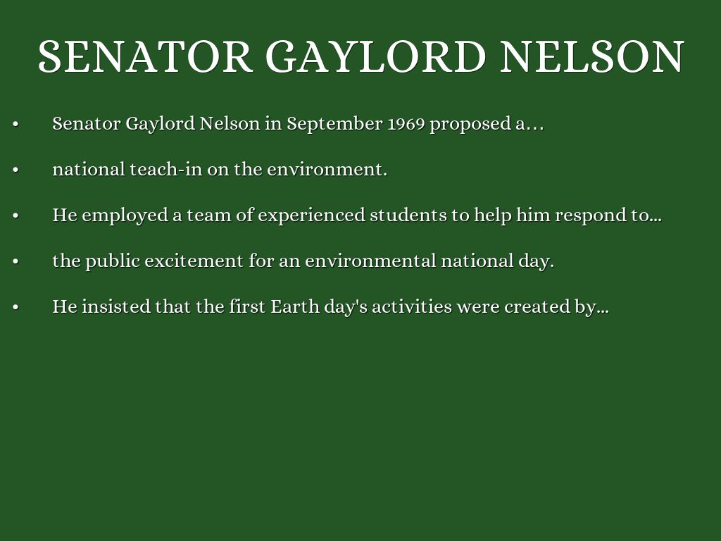 Senator Gaylord Nelson in September 1969 proposed a…