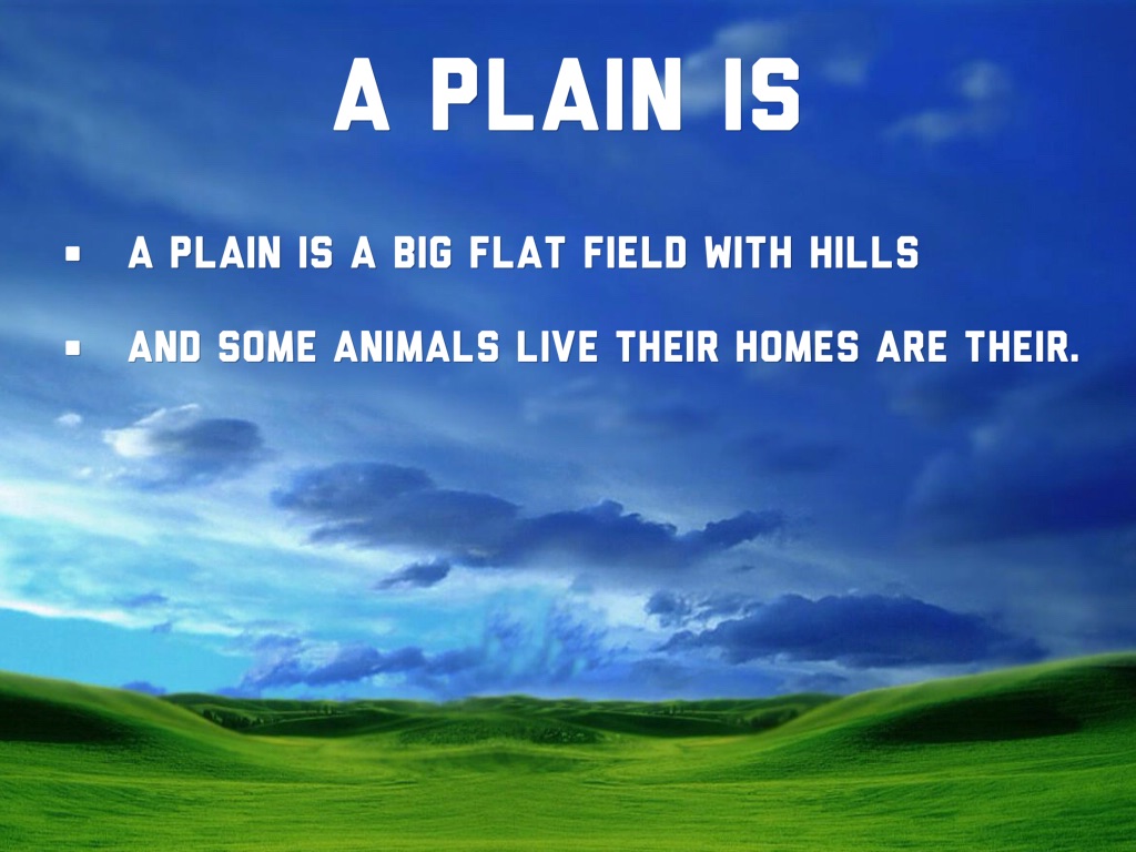 A plain is a big flat field with hills