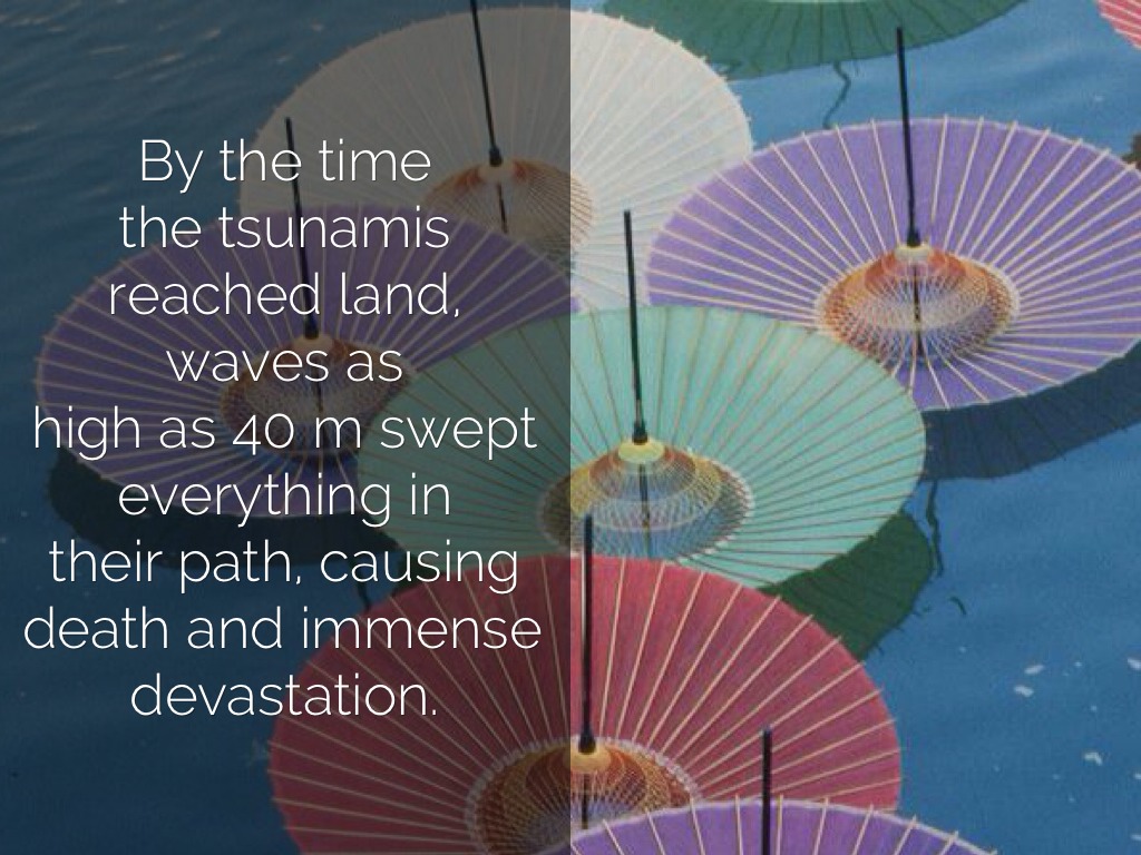 By the time the tsunamis reached land, waves as high as 40 m swept everything in their path, causing death and immense devastation.