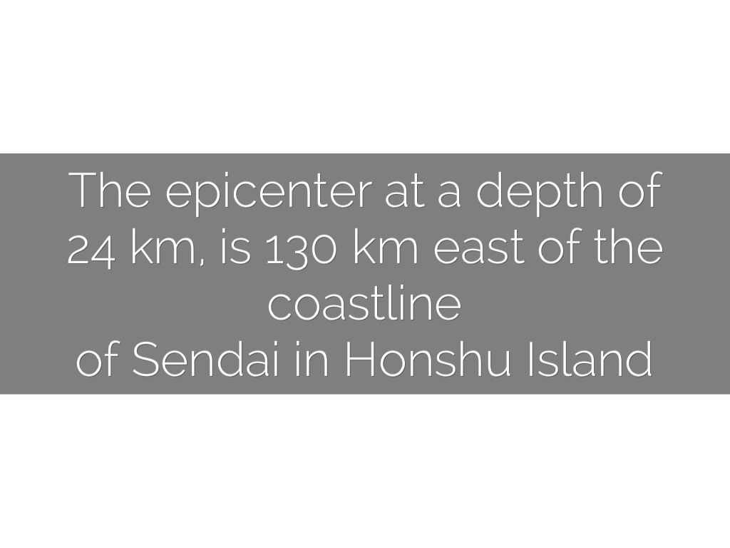 The epicenter at a depth of 24 km, is 130 km east of the coastline of Sendai in Honshu Island