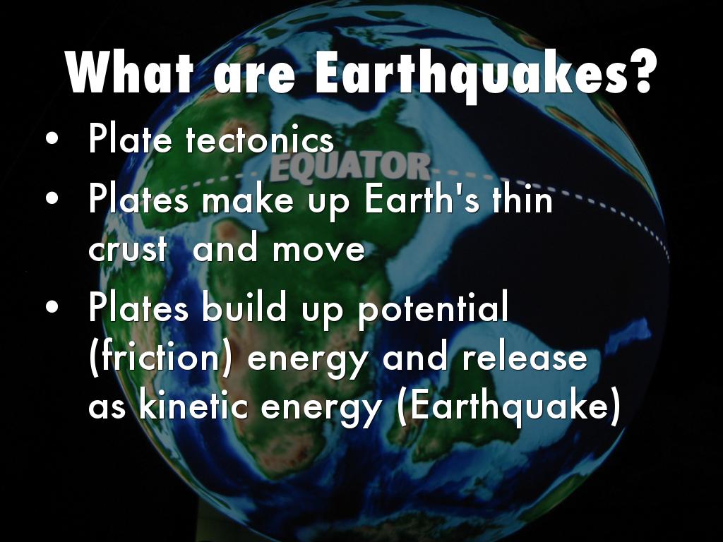 Plates build up potential (friction) energy and release as kinetic energy (Earthquake)