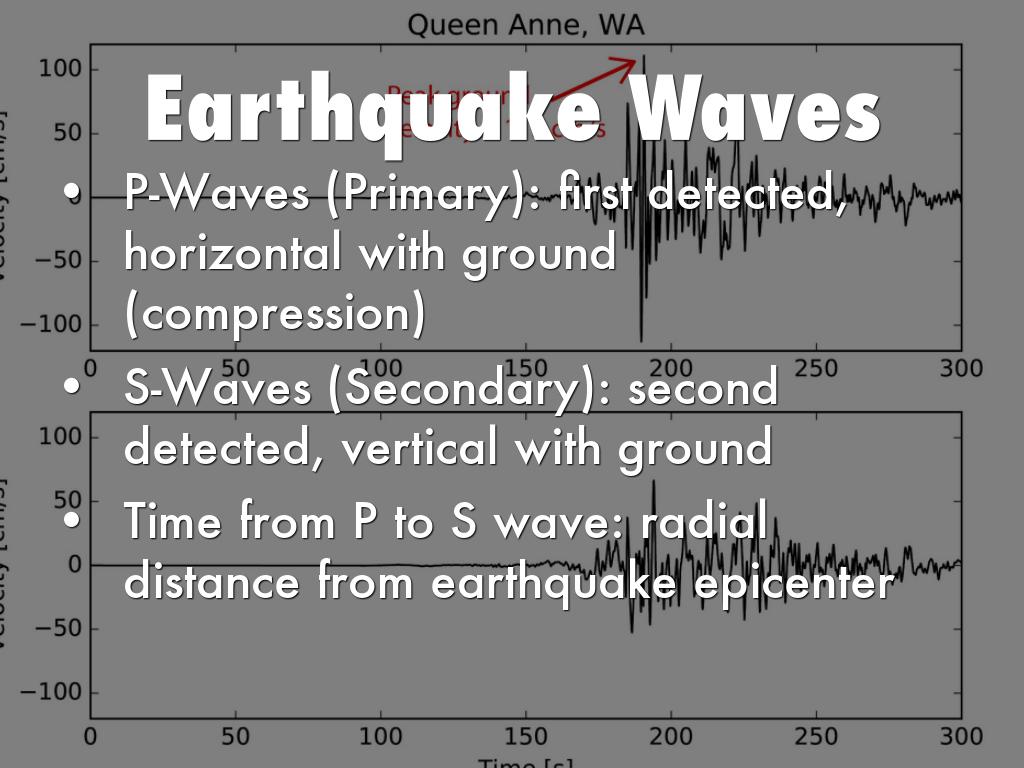 P-Waves (Primary): first detected, horizontal with ground (compression)