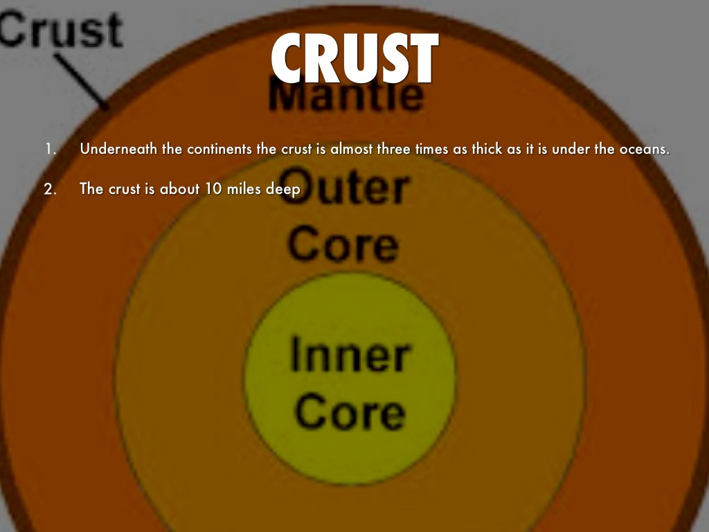 Underneath the continents the crust is almost three times as thick as it is under the oceans.