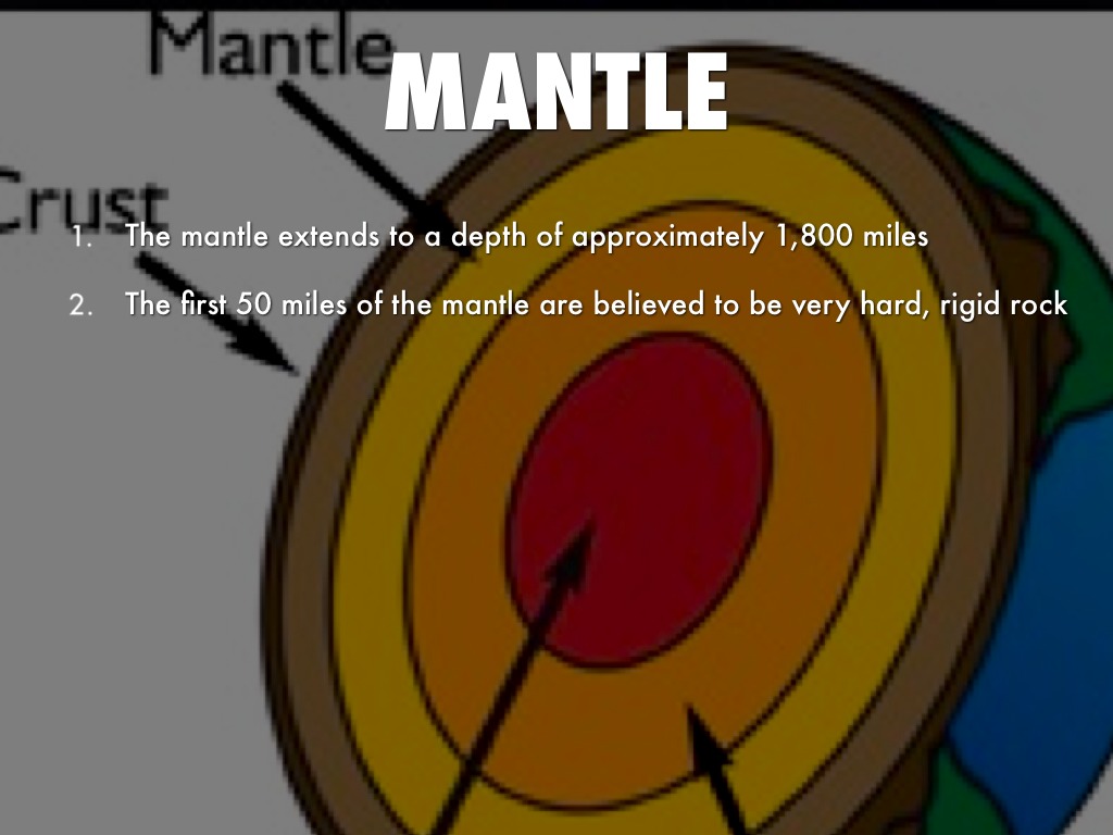 The first 50 miles of the mantle are believed to be very hard, rigid rock