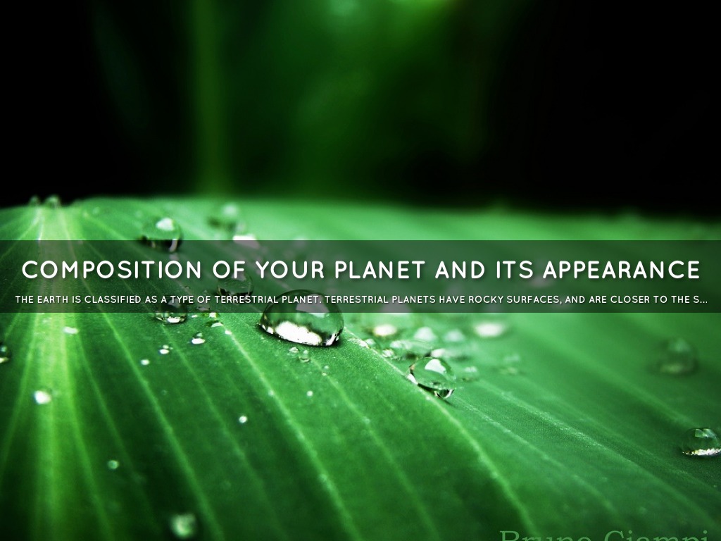 The Earth is classified as a type of terrestrial planet. Terrestrial planets have rocky surfaces, and are closer to the sun than their gaseous counterparts. earth looks green and blue and white if you are looking at it from outer space .