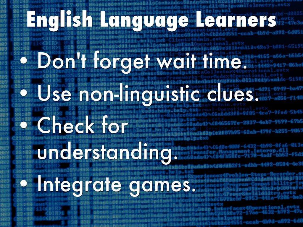 Finley, Todd. "Dipsticks: Efficient Ways to Check for Understanding." Edutopia. N.p., 30 July 2014. Web. 03 Sep. 2014. Ferlazzo, Larry. "Do's & Don'ts For Teaching English-Language Learners." Edutopia. George Lucas Educational Foundation, 12 Mar. 2012. Web. 28 May 2015.