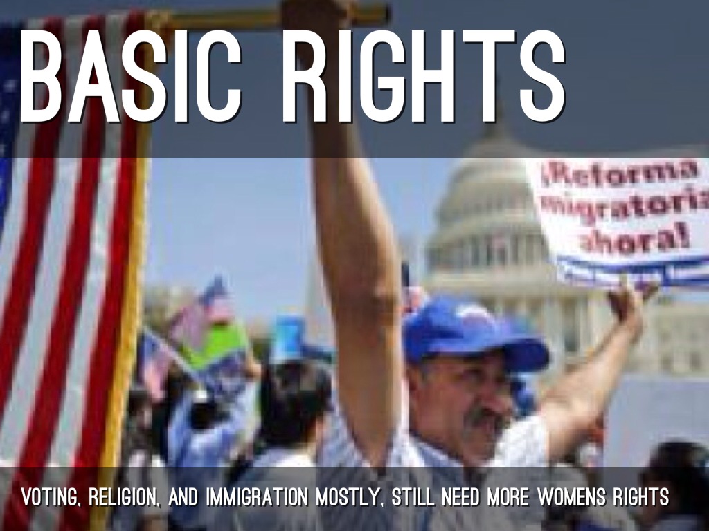 VOTING, RELIGION, AND IMMIGRATION MOSTLY, STILL NEED MORE WOMENS RIGHTS