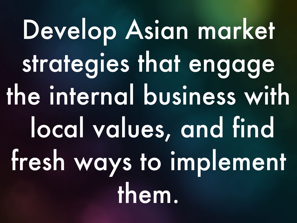 Relationships (Guanxi) - understand their role in Asian business. Understand that the sales process may take a long time.