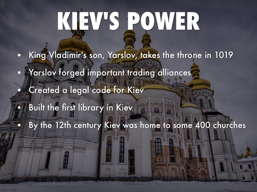 King Vladimir's son, Yarslov, takes the throne in 1019