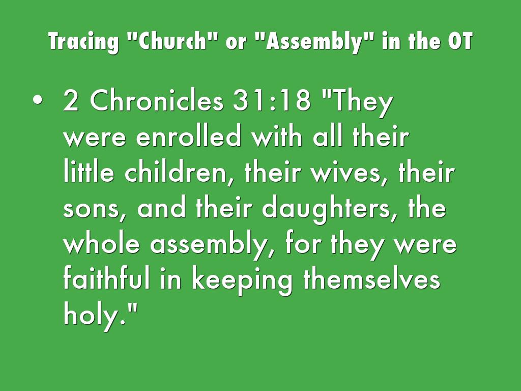 2 Chronicles 31:18 "They were enrolled with all their little children, their wives, their sons, and their daughters, the whole assembly, for they were faithful in keeping themselves holy."