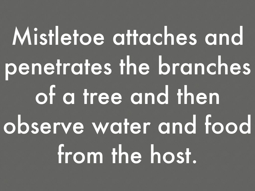 Mistletoe attaches and penetrates the branches of a tree and then observe water and food from the host.