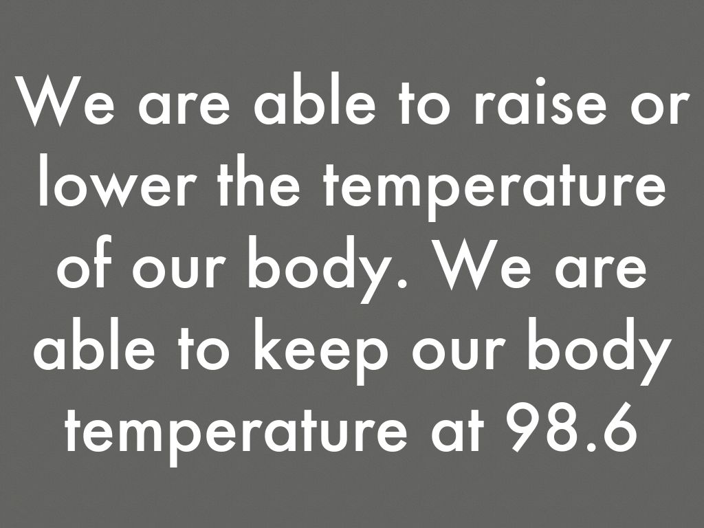 We are able to raise or lower the temperature of our body. We are able to keep our body temperature at 98.6