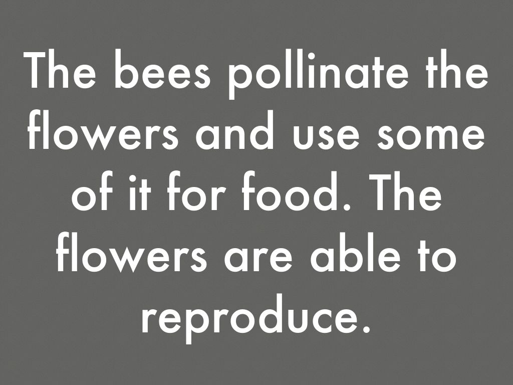The bees pollinate the flowers and use some of it for food. The flowers are able to reproduce.