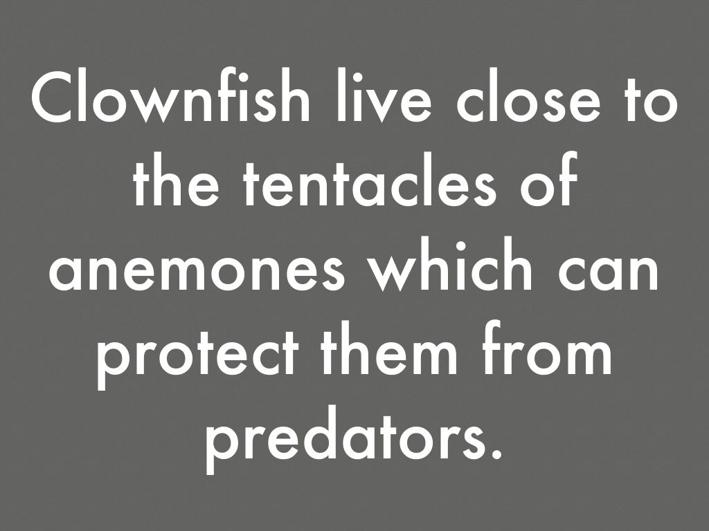 Clownfish live close to the tentacles of anemones which can protect them from predators.