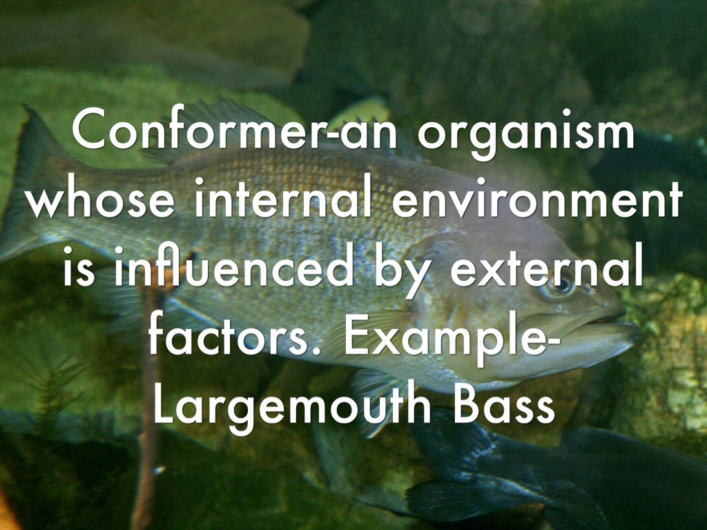 Conformer-an organism whose internal environment is influenced by external factors. Example-Largemouth Bass