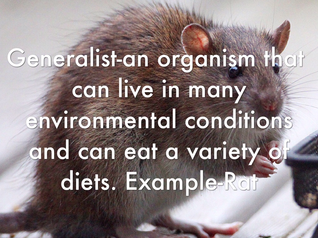 Generalist-an organism that can live in many environmental conditions and can eat a variety of diets. Example-Rat