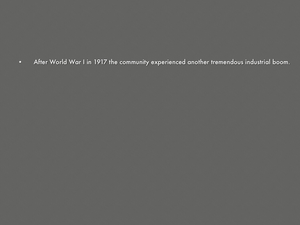After World War I in 1917 the community experienced another tremendous industrial boom.