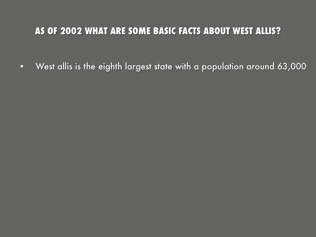 AS OF 2002 WHAT ARE SOME BASIC FACTS ABOUT WEST ALLIS?