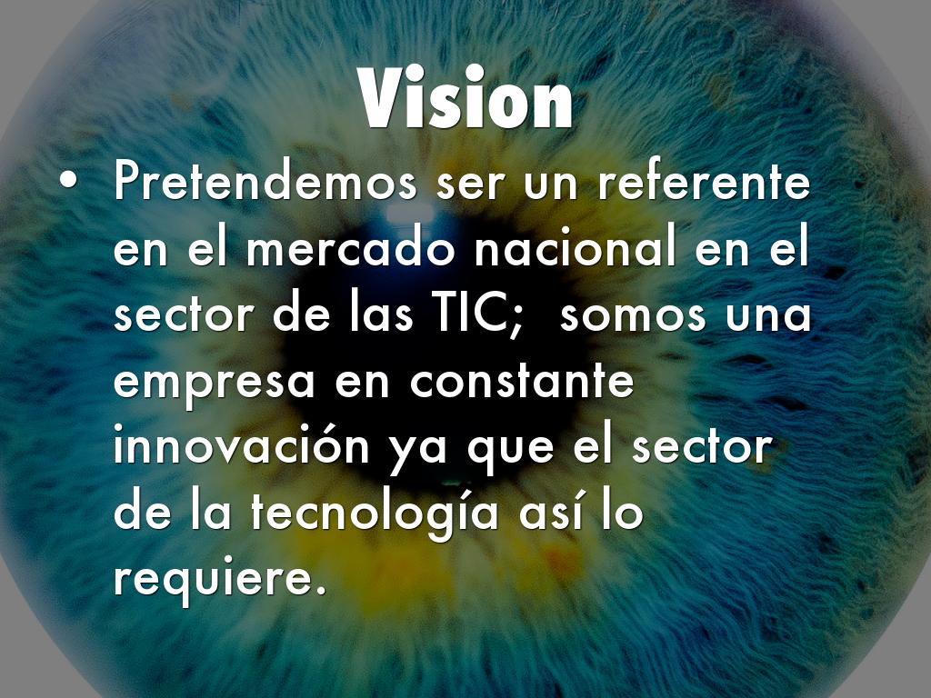 • Pretendemos ser un referente en el mercado nacional en el sector de las TIC; somos una empresa en constante innovación ya que el sector de la tecnología así lo requiere.