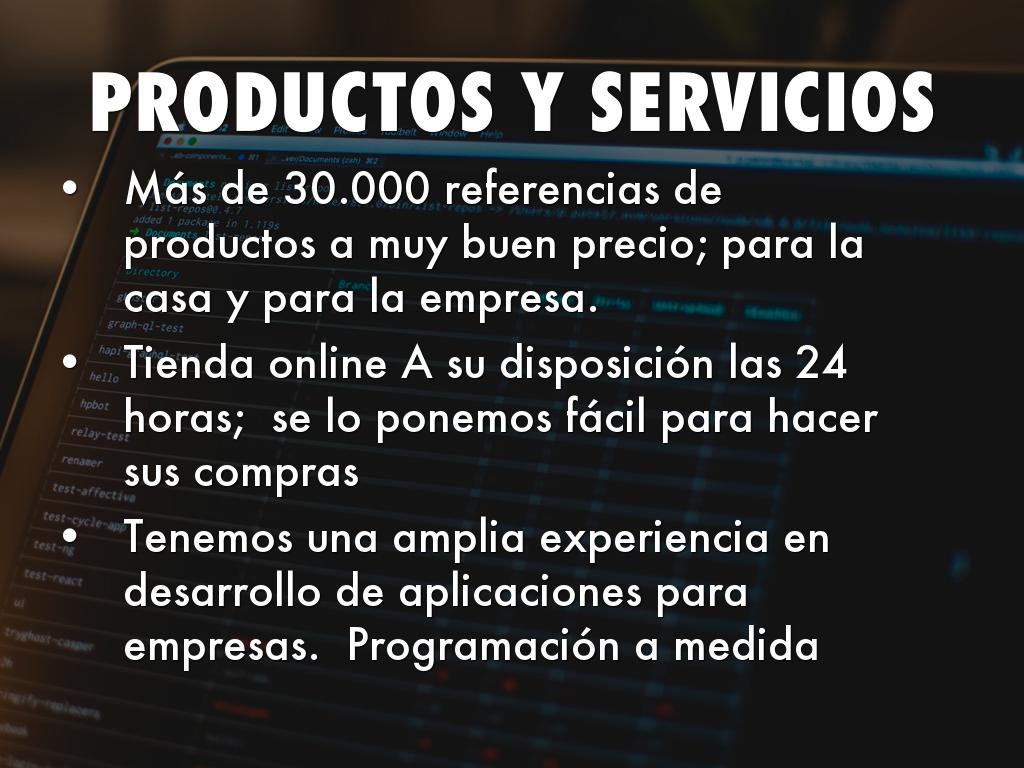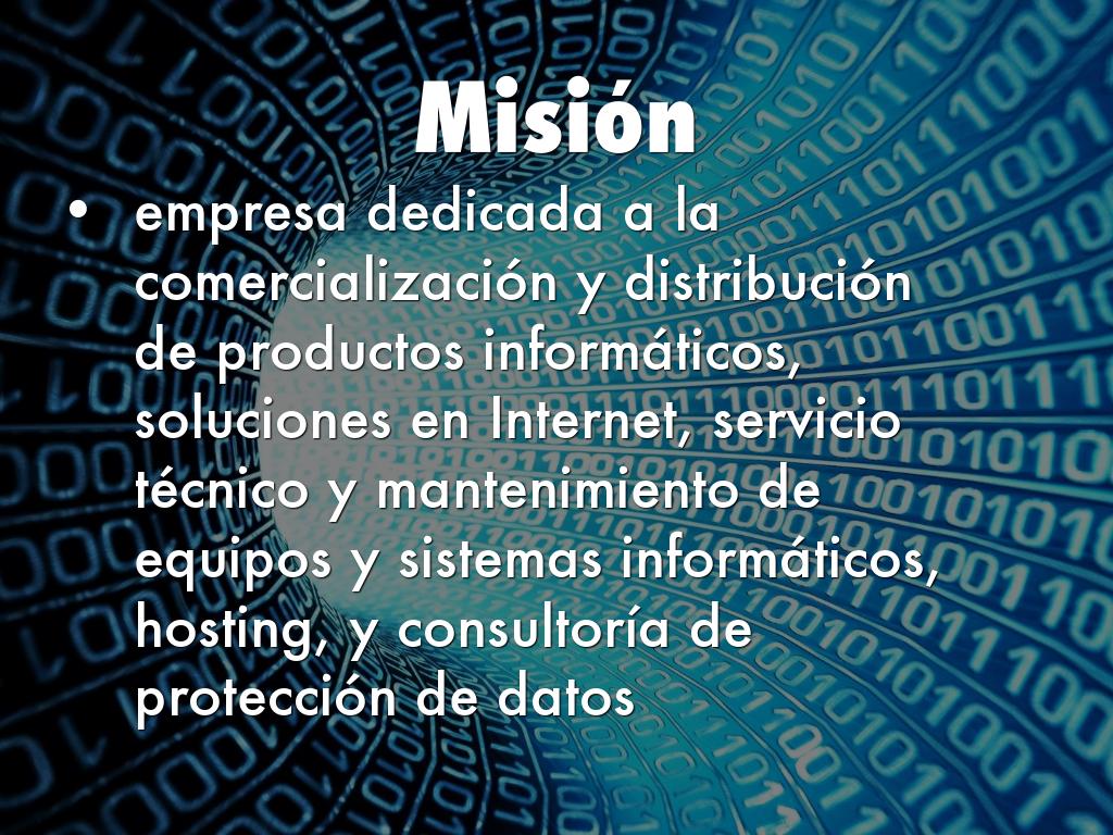 • empresa dedicada a la comercialización y distribución de productos informáticos, soluciones en Internet, servicio técnico y mantenimiento de equipos y sistemas informáticos, hosting, y consultoría de protección de datos