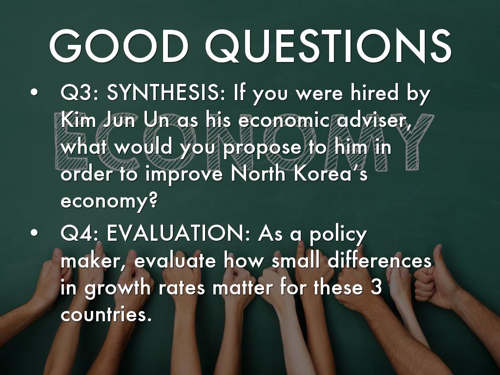 Q3: SYNTHESIS: If you were hired by Kim Jun Un as his economic adviser, what would you propose to him in order to improve North Korea’s economy?
