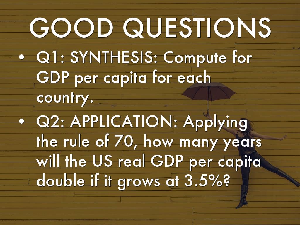 Q2: APPLICATION: Applying the rule of 70, how many years will the US real GDP per capita double if it grows at 3.5%?