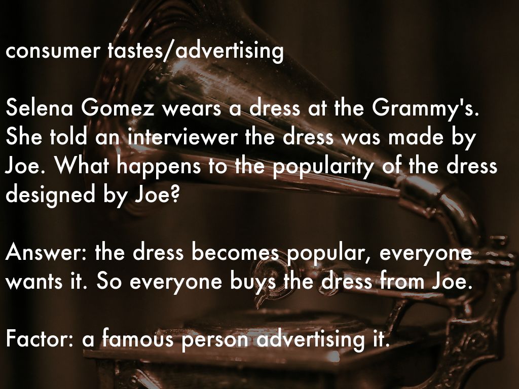 Selena Gomez wears a dress at the Grammy's. She told an interviewer the dress was made by Joe. What happens to the popularity of the dress designed by Joe?