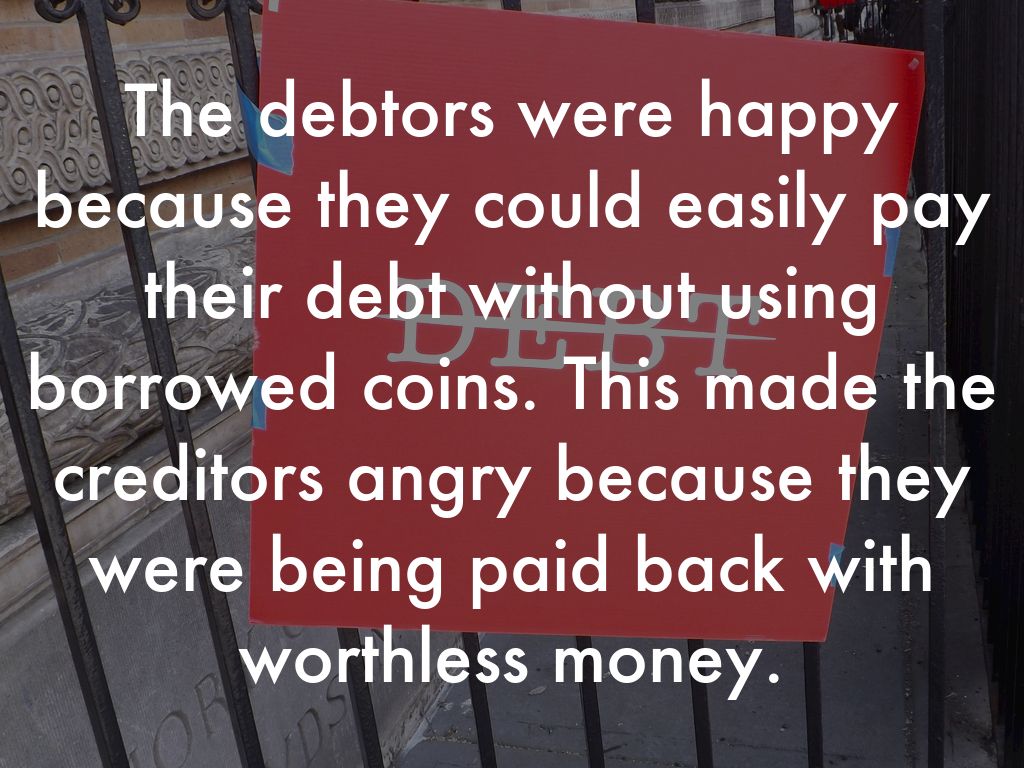 The debtors were happy because they could easily pay their debt without using borrowed coins. This made the creditors angry because they were being paid back with worthless money.