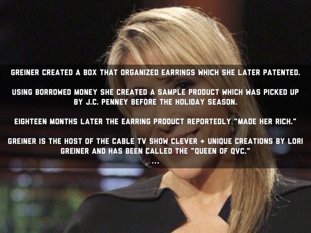Lori Greiner majored in Communications focusing on journalism, television and film, at Loyola University Chicago and worked for the Chicago Tribune while attending university.