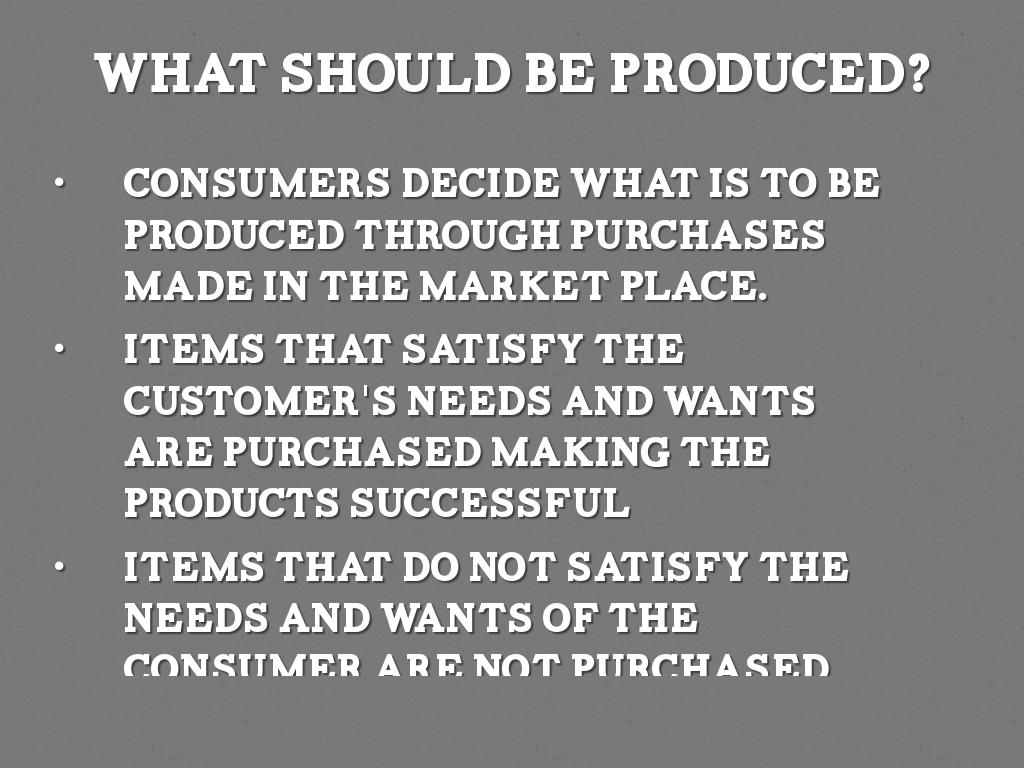 Items that do not satisfy the needs and wants of the consumer are not purchased and are not successful