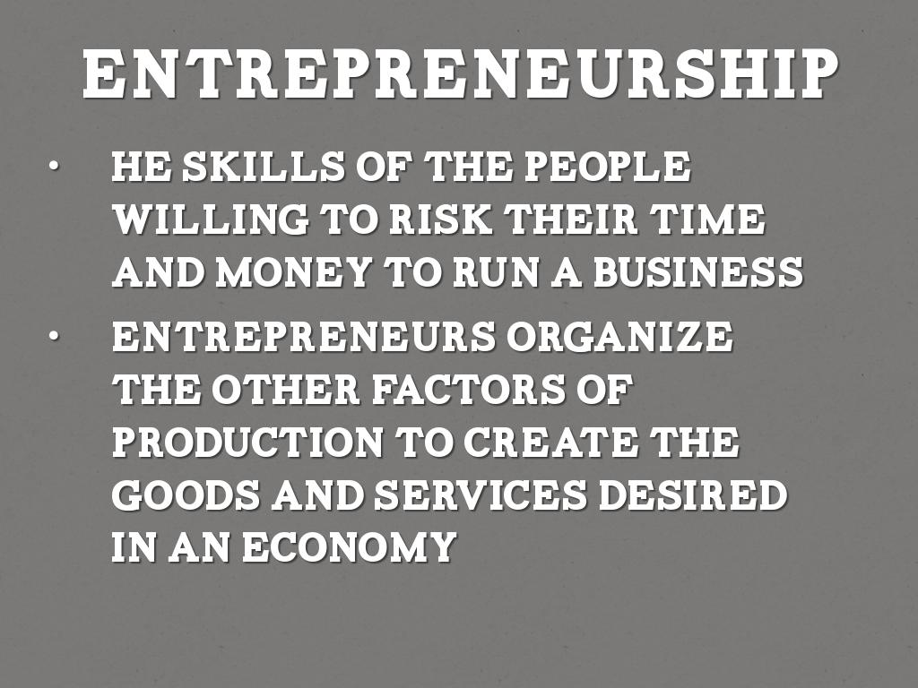 Entrepreneurs organize the other factors of production to create the goods and services desired in an economy