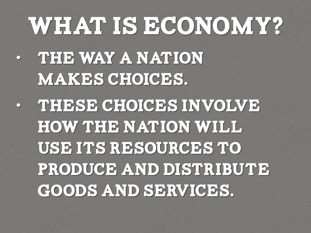 These choices involve how the nation will use its resources to produce and distribute goods and services.