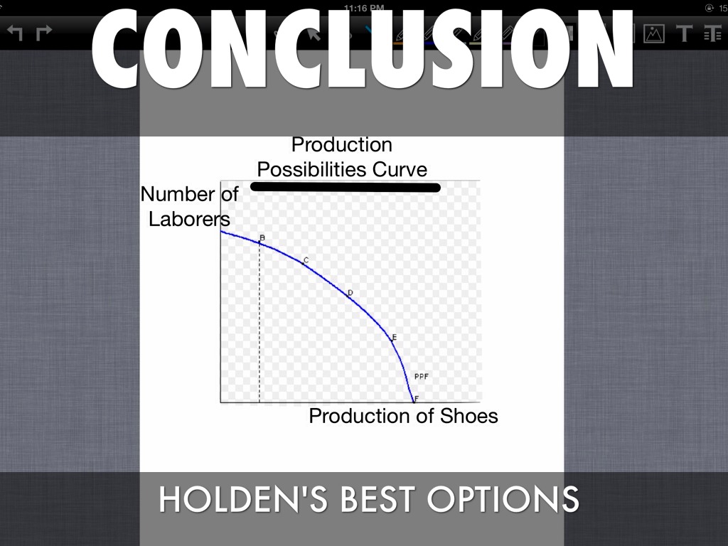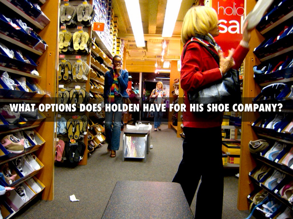 WHAT OPTIONS DOES HOLDEN HAVE FOR HIS SHOE COMPANY?