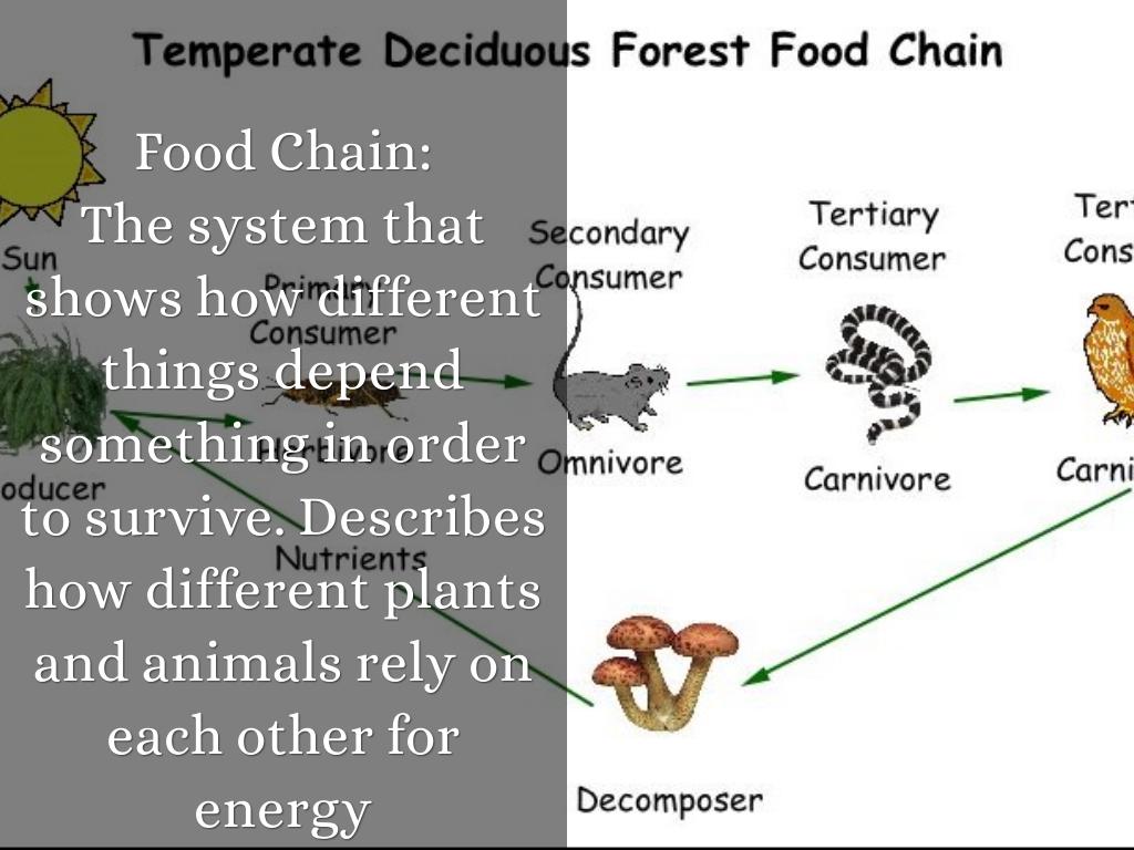 The system that shows how different things depend something in order to survive. Describes how different plants and animals rely on each other for energy