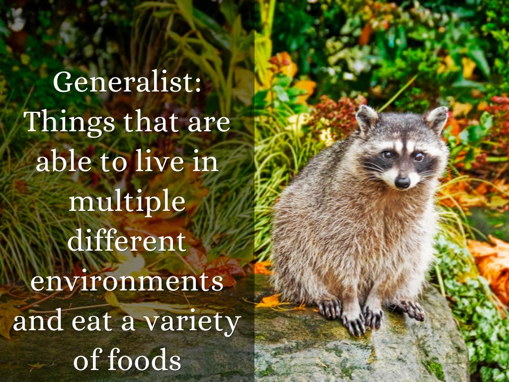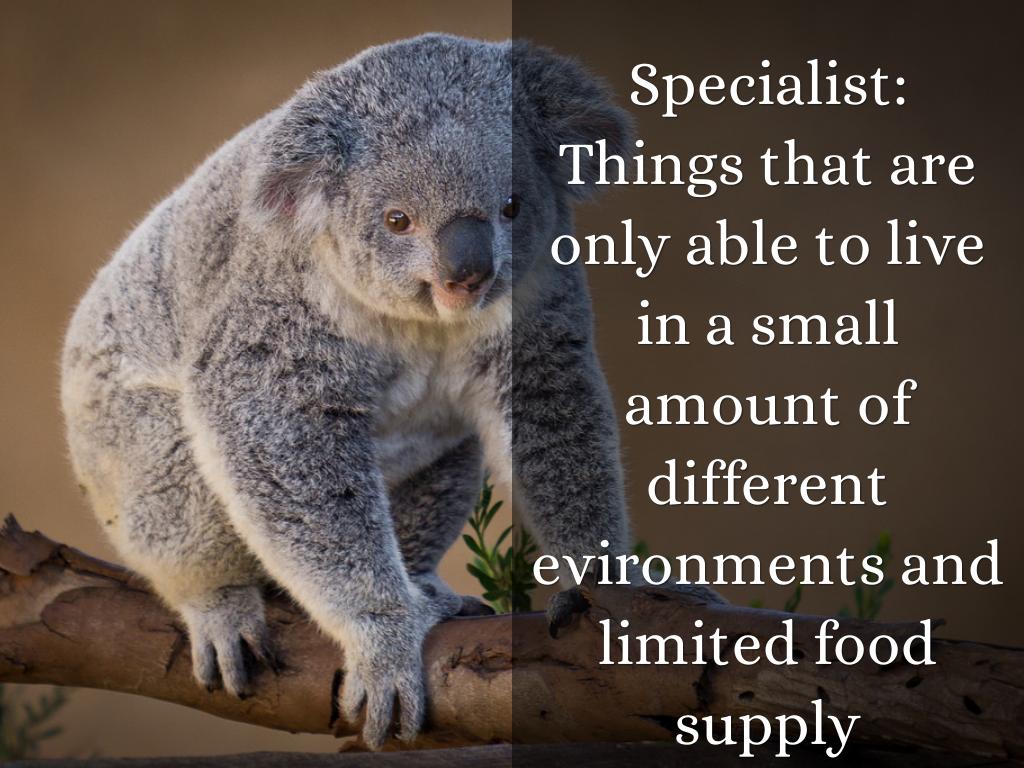 Things that are only able to live in a small amount of different evironments and limited food supply