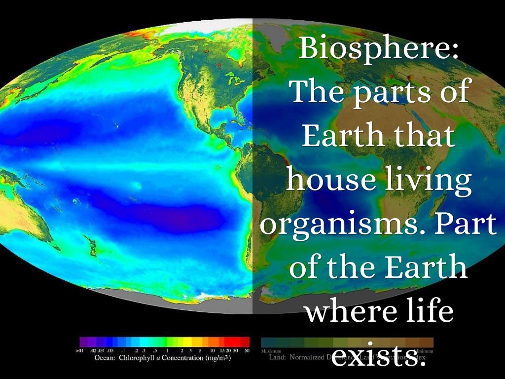 The parts of Earth that house living organisms. Part of the Earth where life exists.