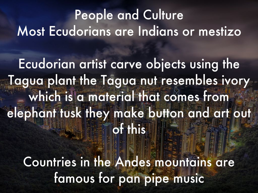 Ecudorian artist carve objects using the Tagua plant the Tagua nut resembles ivory which is a material that comes from elephant tusk they make button and art out of this