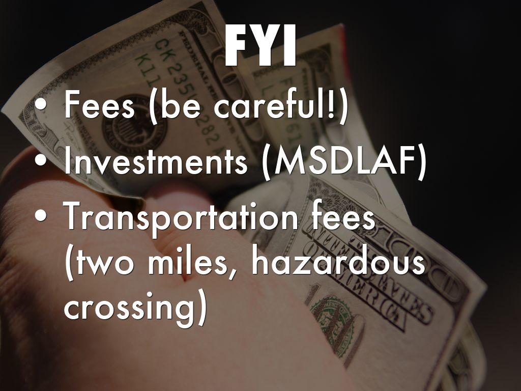 • Transportation fees (two miles, hazardous crossing)
