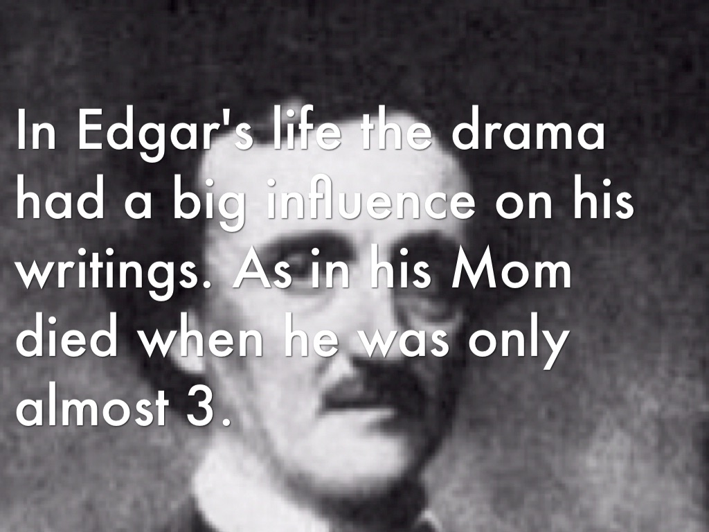In Edgar's life the drama had a big influence on his writings. As in his Mom died when he was only almost 3.