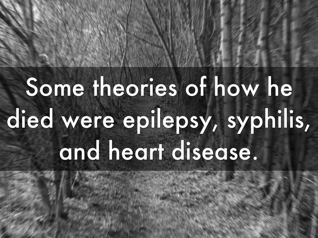 Some theories of how he died were epilepsy, syphilis, and heart disease.
