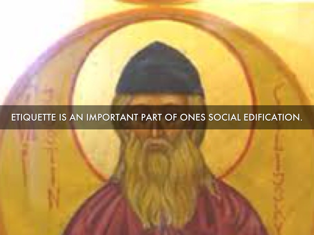 ETIQUETTE IS AN IMPORTANT PART OF ONES SOCIAL EDIFICATION.