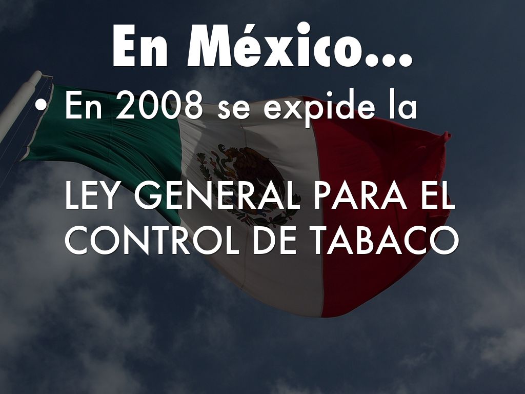 • En 2008 se expide la LEY GENERAL PARA EL CONTROL DE TABACO