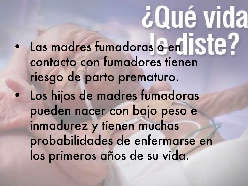 • Las madres fumadoras o en contacto con fumadores tienen riesgo de parto prematuro.
