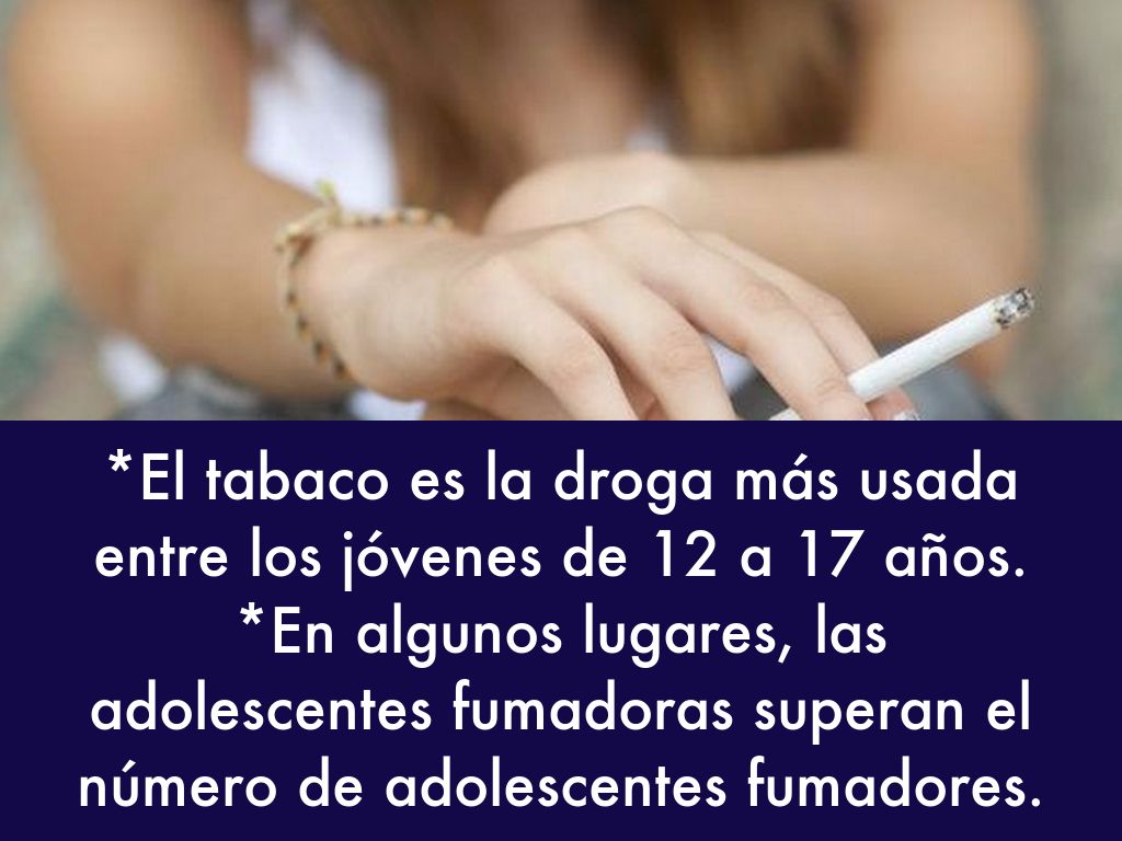 *En algunos lugares, las adolescentes fumadoras superan el número de adolescentes fumadores.