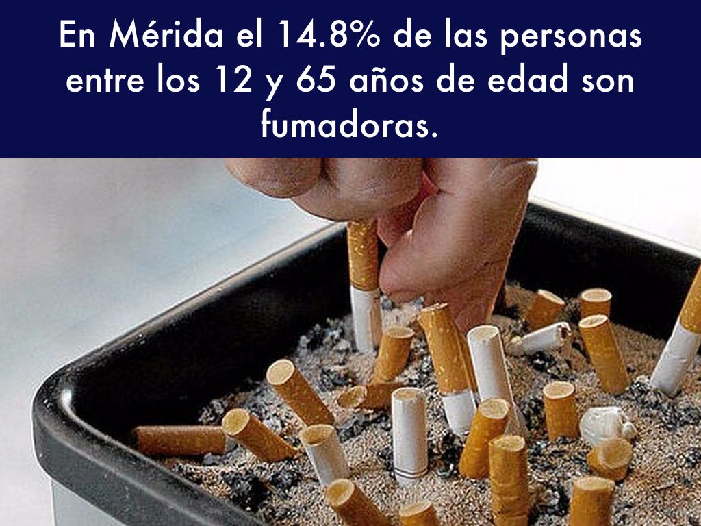 En Mérida el 14.8% de las personas entre los 12 y 65 años de edad son fumadoras.