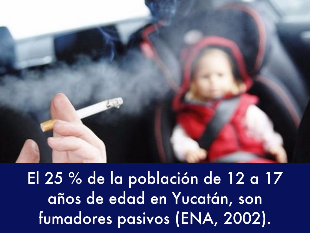 El 25 % de la población de 12 a 17 años de edad en Yucatán, son fumadores pasivos (ENA, 2002).